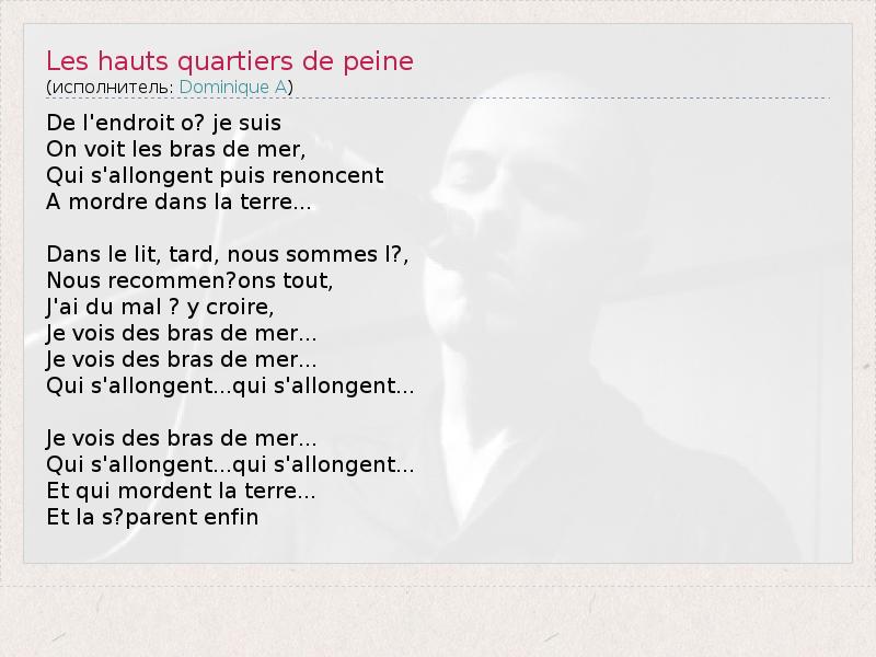А как ты думаешь, о чем песня "Les hauts quartiers de peine" ?