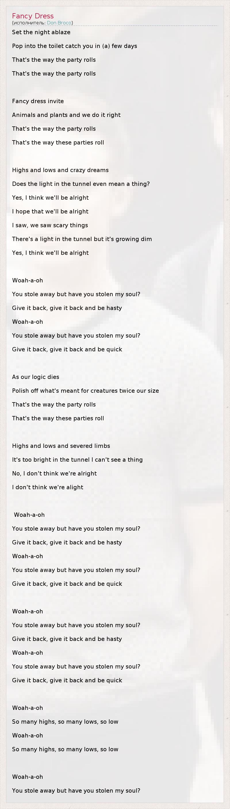 А как ты думаешь, о чем песня "Fancy Dress" ?