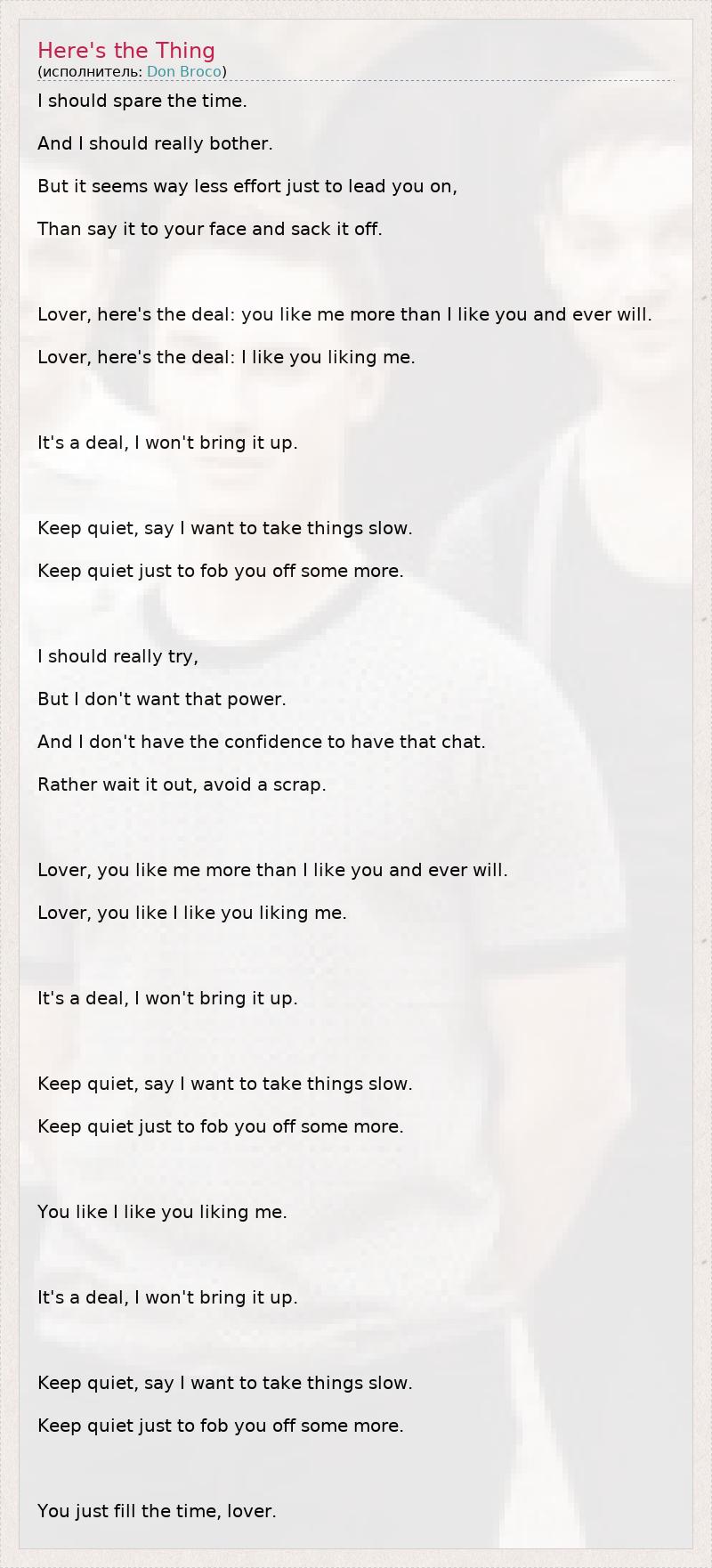 А как ты думаешь, о чем песня "Here's the Thing" ?