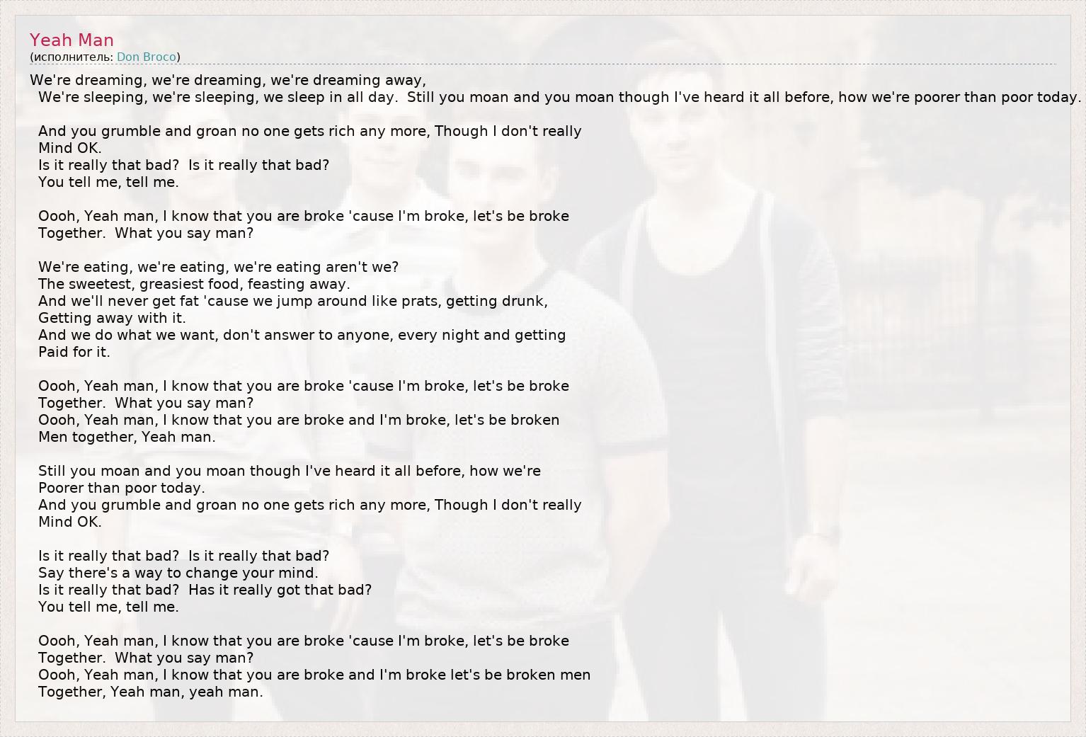 А как ты думаешь, о чем песня "Yeah Man" ?