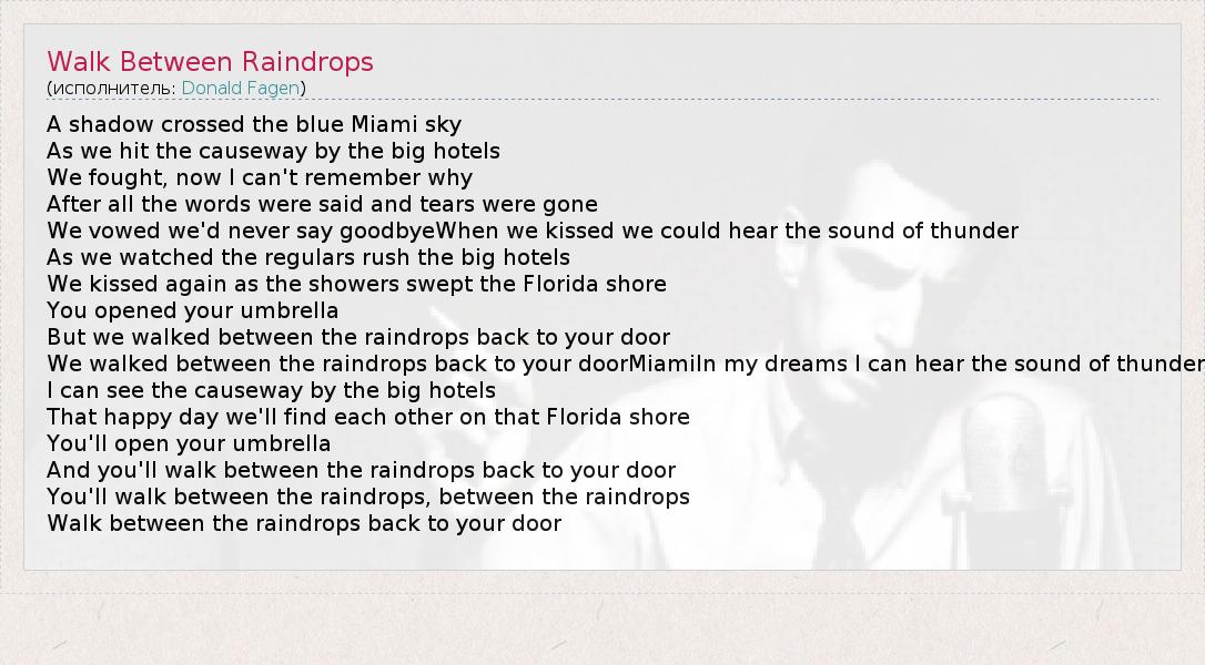 А как ты думаешь, о чем песня "Walk Between Raindrops" ?