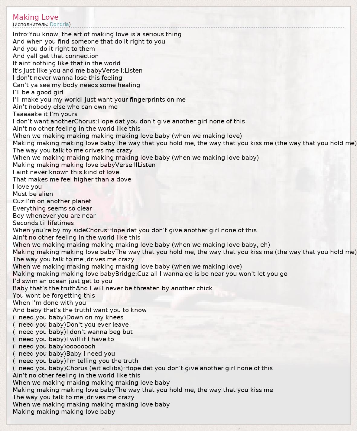 Making making making love babyBridge:Cuz all I wanna do is be near you won't let you go