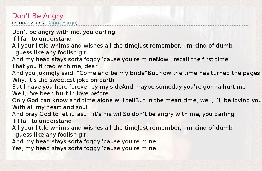 А как ты думаешь, о чем песня "Don't Be Angry" ?
