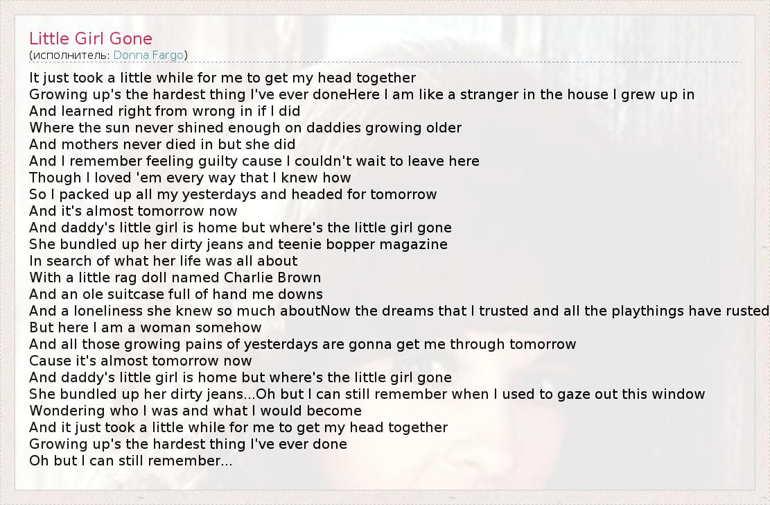 А как ты думаешь, о чем песня "Little Girl Gone" ?