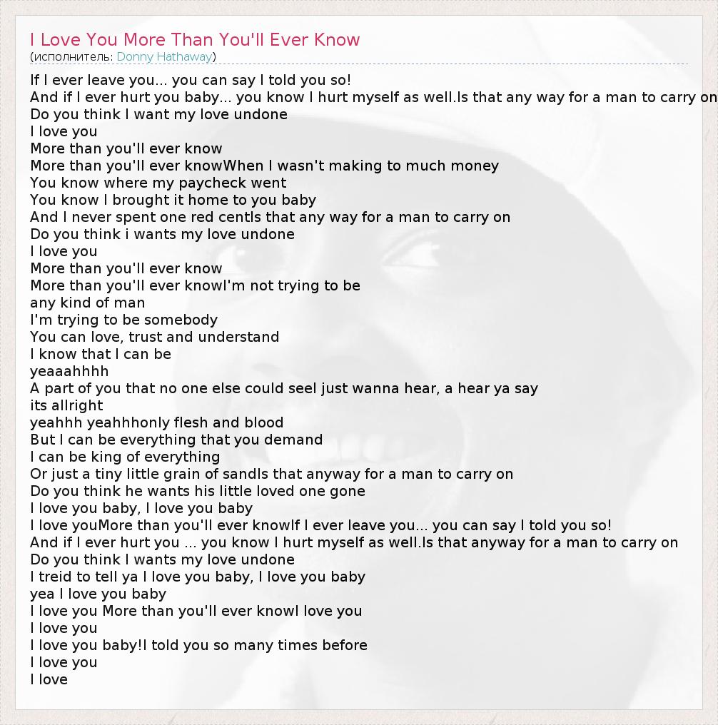 ГлавнаяИсполнителиDonny HathawayI Love You More Than You'll Ever Know