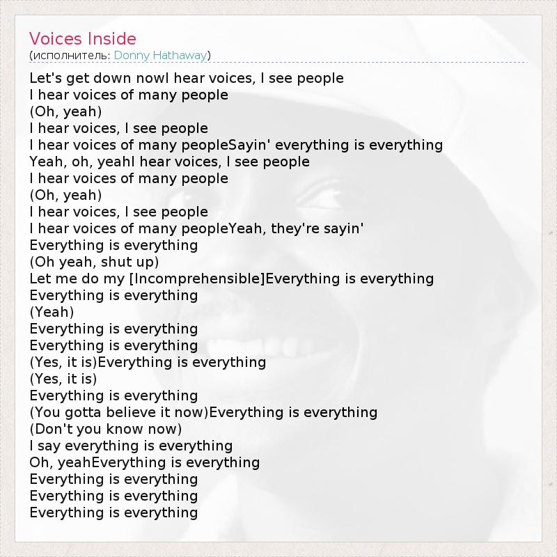 I hear voices of many peopleSayin' everything is everything