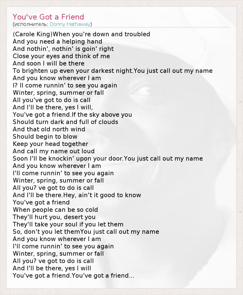 А как ты думаешь, о чем песня "You've Got a Friend" ?