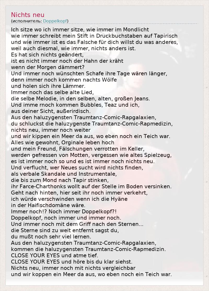 А как ты думаешь, о чем песня "Nichts neu" ?