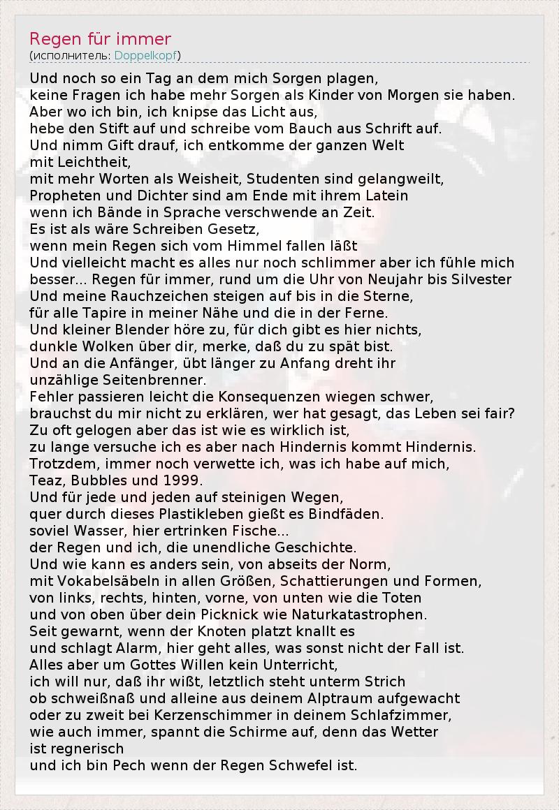 А как ты думаешь, о чем песня "Regen für immer" ?