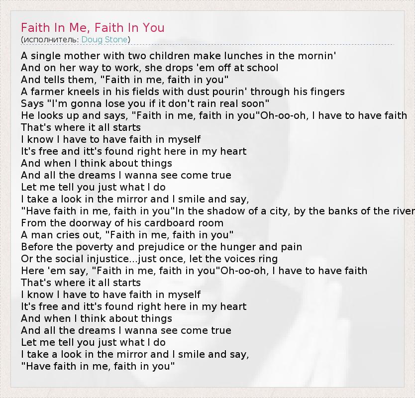 А как ты думаешь, о чем песня "Faith In Me, Faith In You" ?