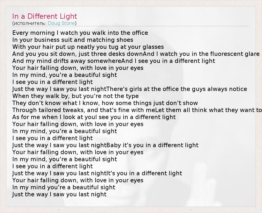 А как ты думаешь, о чем песня "In a Different Light" ?