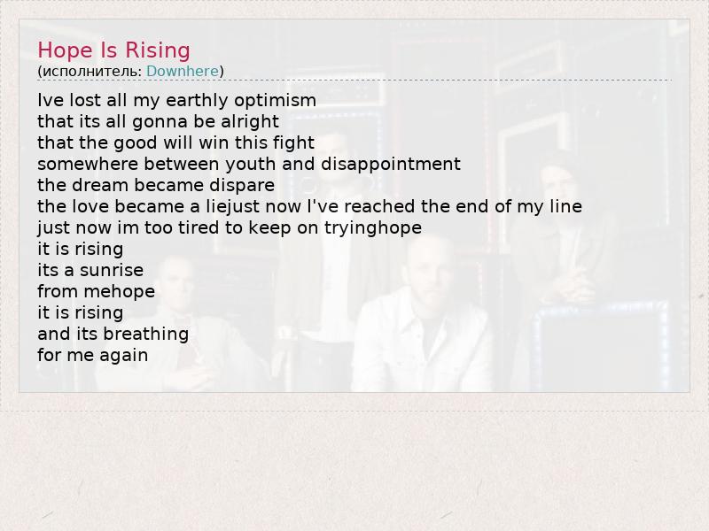 А как ты думаешь, о чем песня "Hope Is Rising" ?