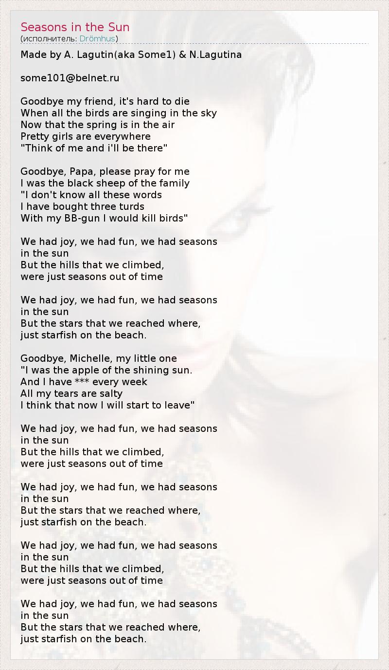 А как ты думаешь, о чем песня "Seasons in the Sun" ?