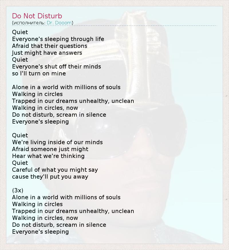 А как ты думаешь, о чем песня "Do Not Disturb" ?