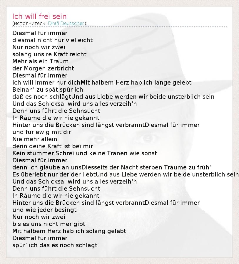 А как ты думаешь, о чем песня "Ich will frei sein" ?