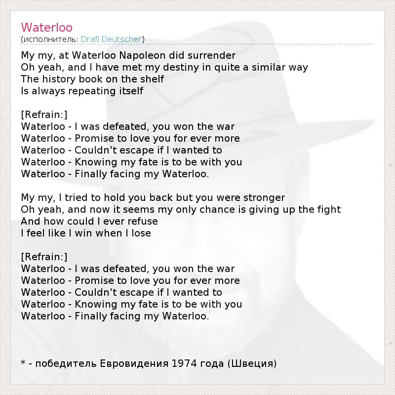 Пришел к Ватерлоо Наполеон, и без победы сдался он.