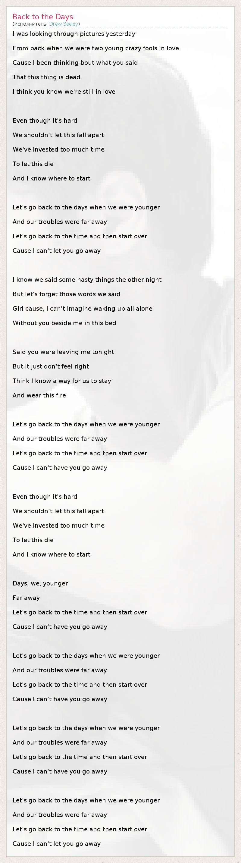 А как ты думаешь, о чем песня "Back to the Days" ?