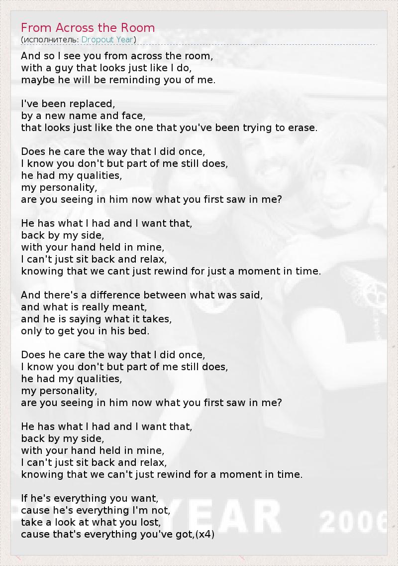 А как ты думаешь, о чем песня "From Across the Room" ?
