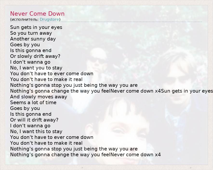 А как ты думаешь, о чем песня "Never Come Down" ?