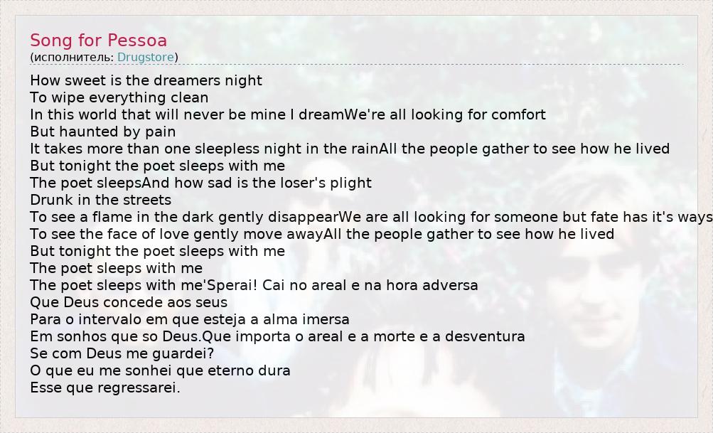 А как ты думаешь, о чем песня "Song for Pessoa" ?