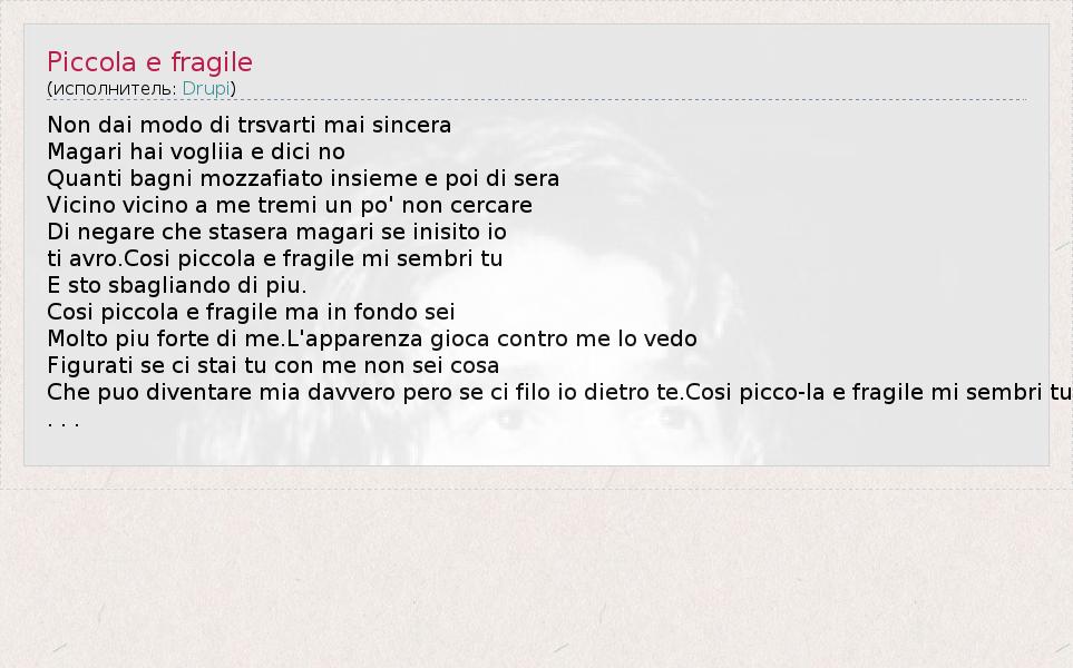 А как ты думаешь, о чем песня "Piccola e fragile" ?