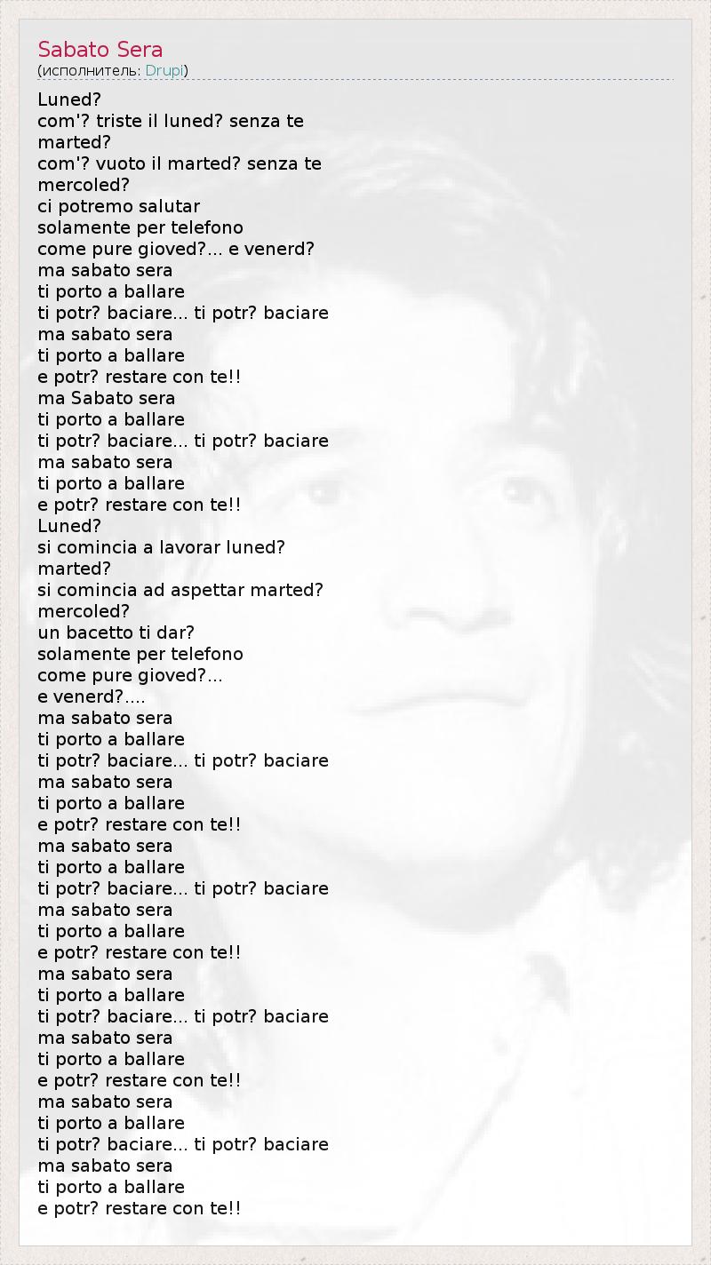 А как ты думаешь, о чем песня "Sabato Sera" ?