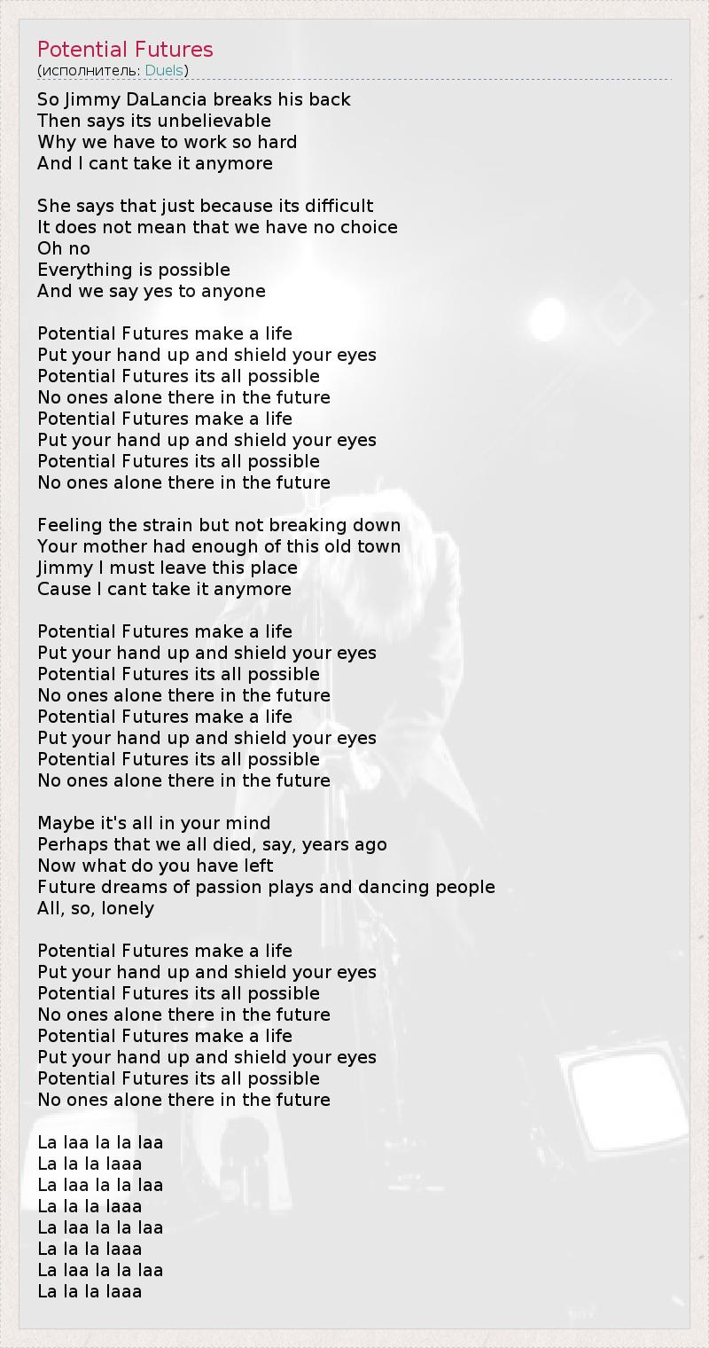 А как ты думаешь, о чем песня "Potential Futures" ?