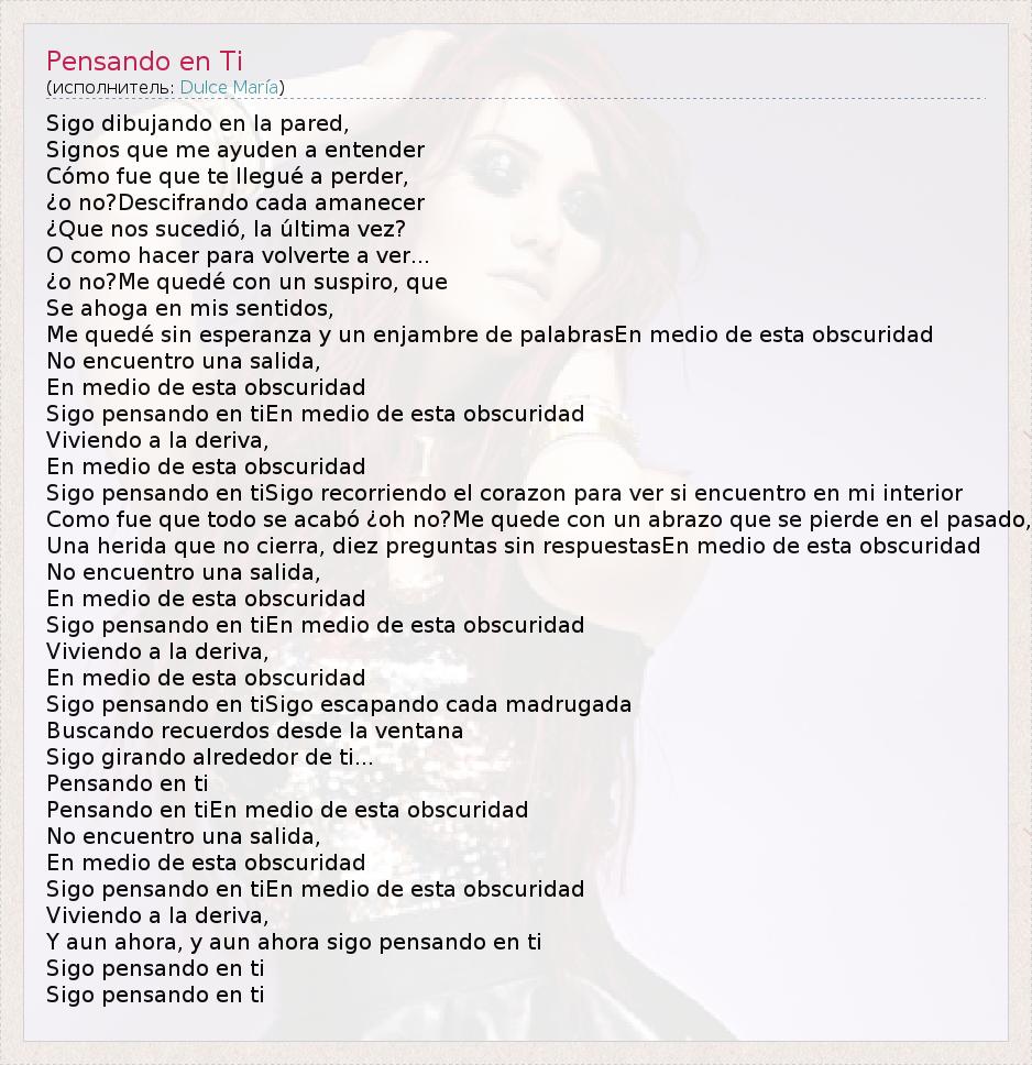 А как ты думаешь, о чем песня "Pensando en Ti" ?