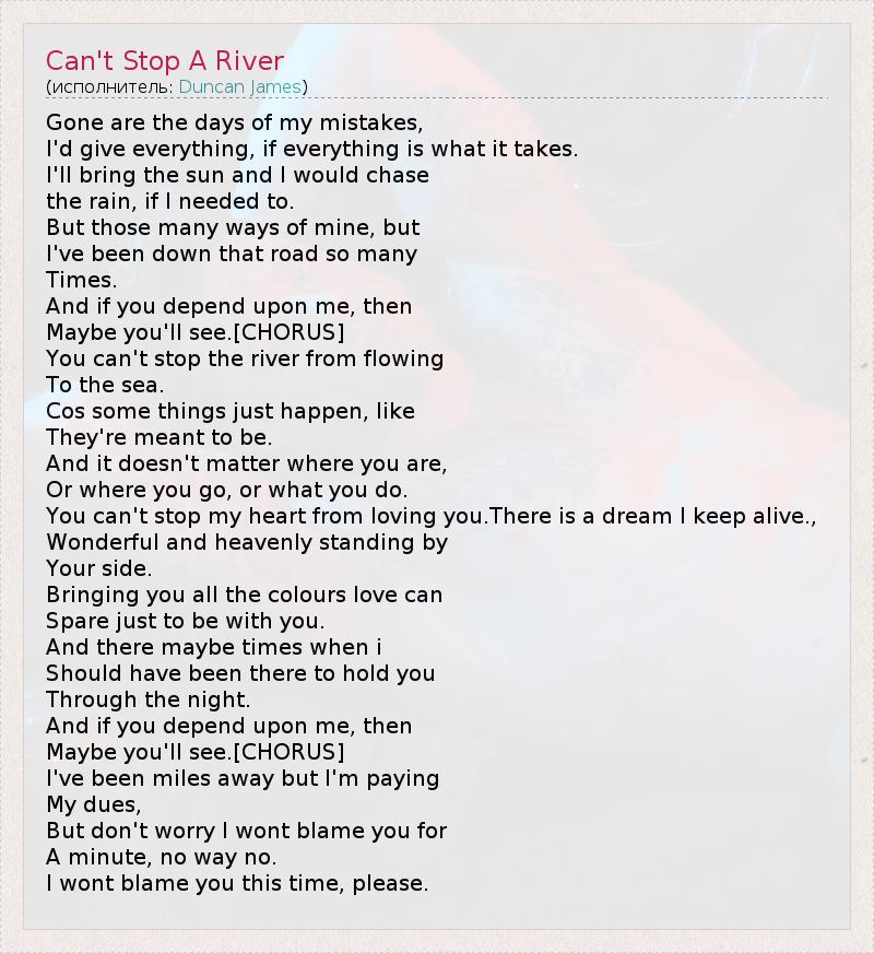 А как ты думаешь, о чем песня "Can't Stop A River" ?