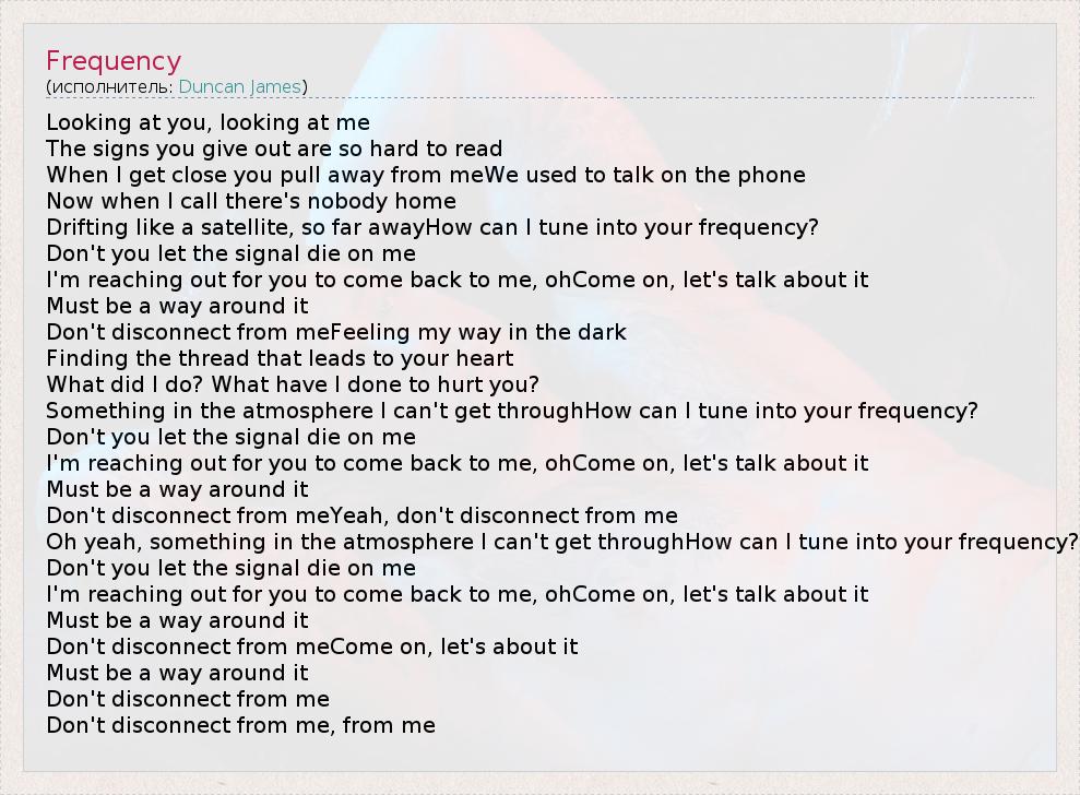 А как ты думаешь, о чем песня "Frequency" ?