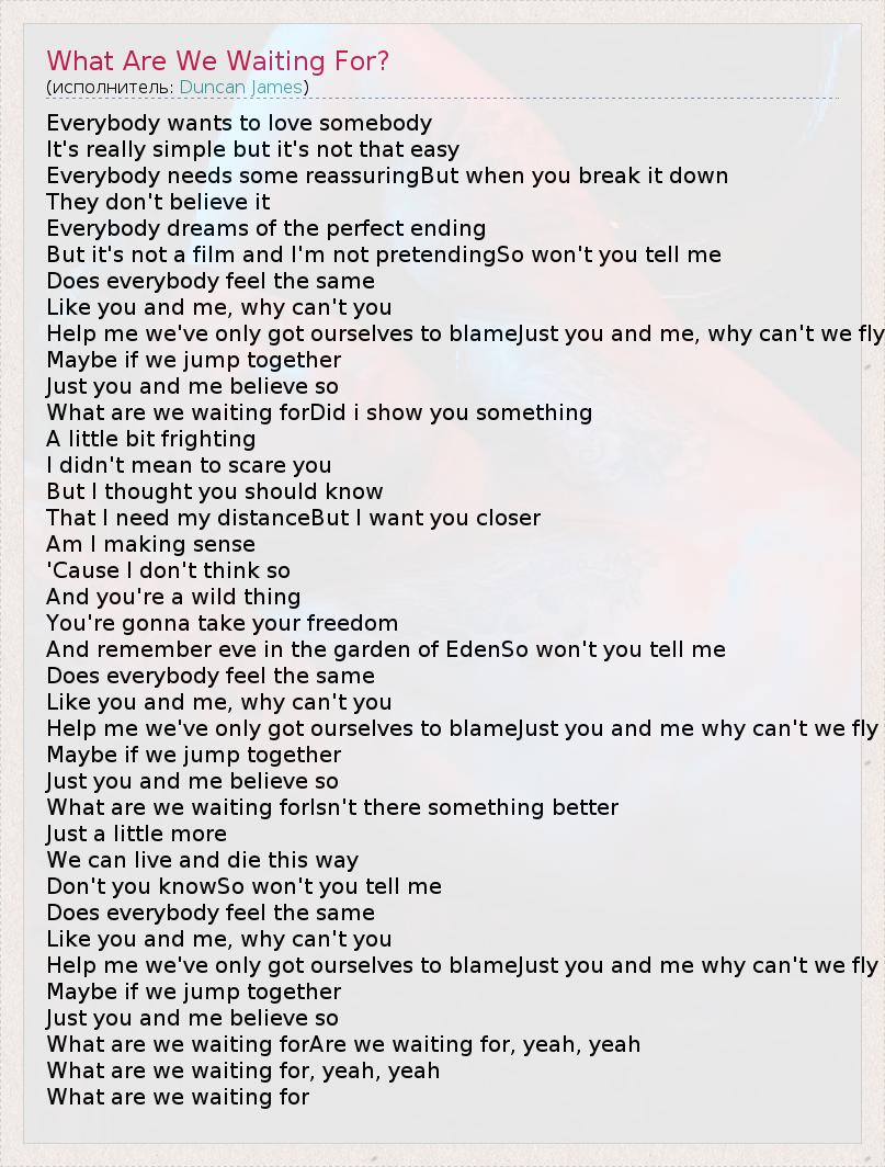 А как ты думаешь, о чем песня "What Are We Waiting For?" ?