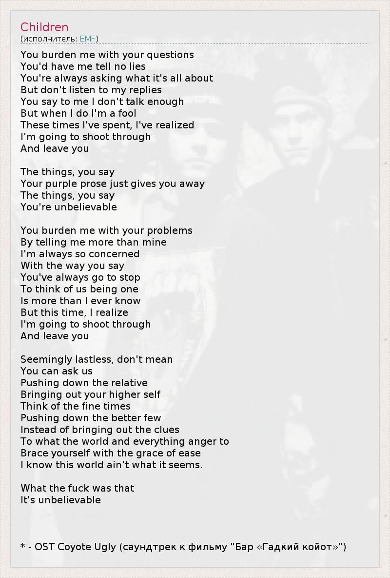 А как ты думаешь, о чем песня "Children" ?