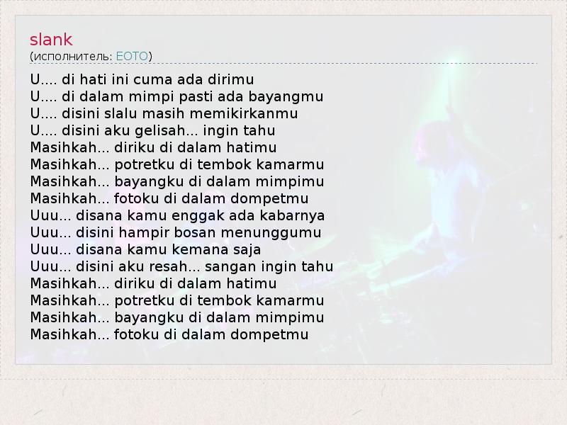 А как ты думаешь, о чем песня "slank" ?