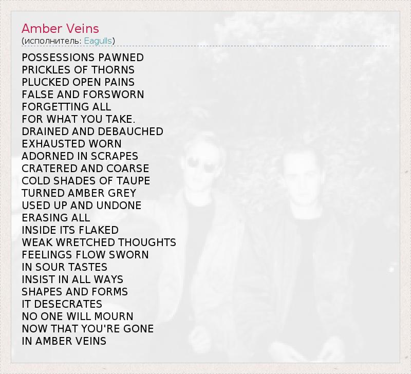 А как ты думаешь, о чем песня "Amber Veins" ?