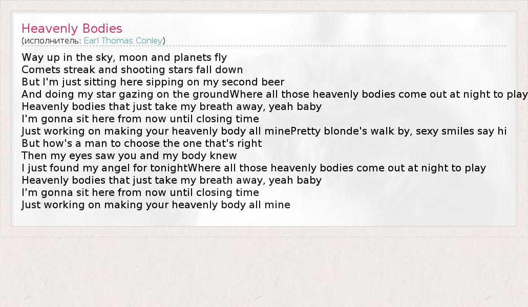 А как ты думаешь, о чем песня "Heavenly Bodies" ?