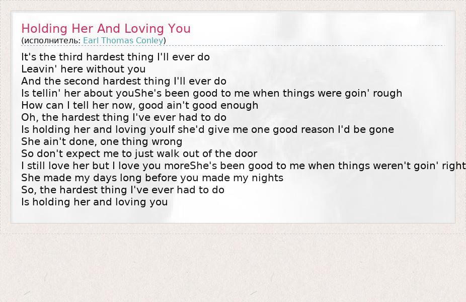 А как ты думаешь, о чем песня "Holding Her And Loving You" ?