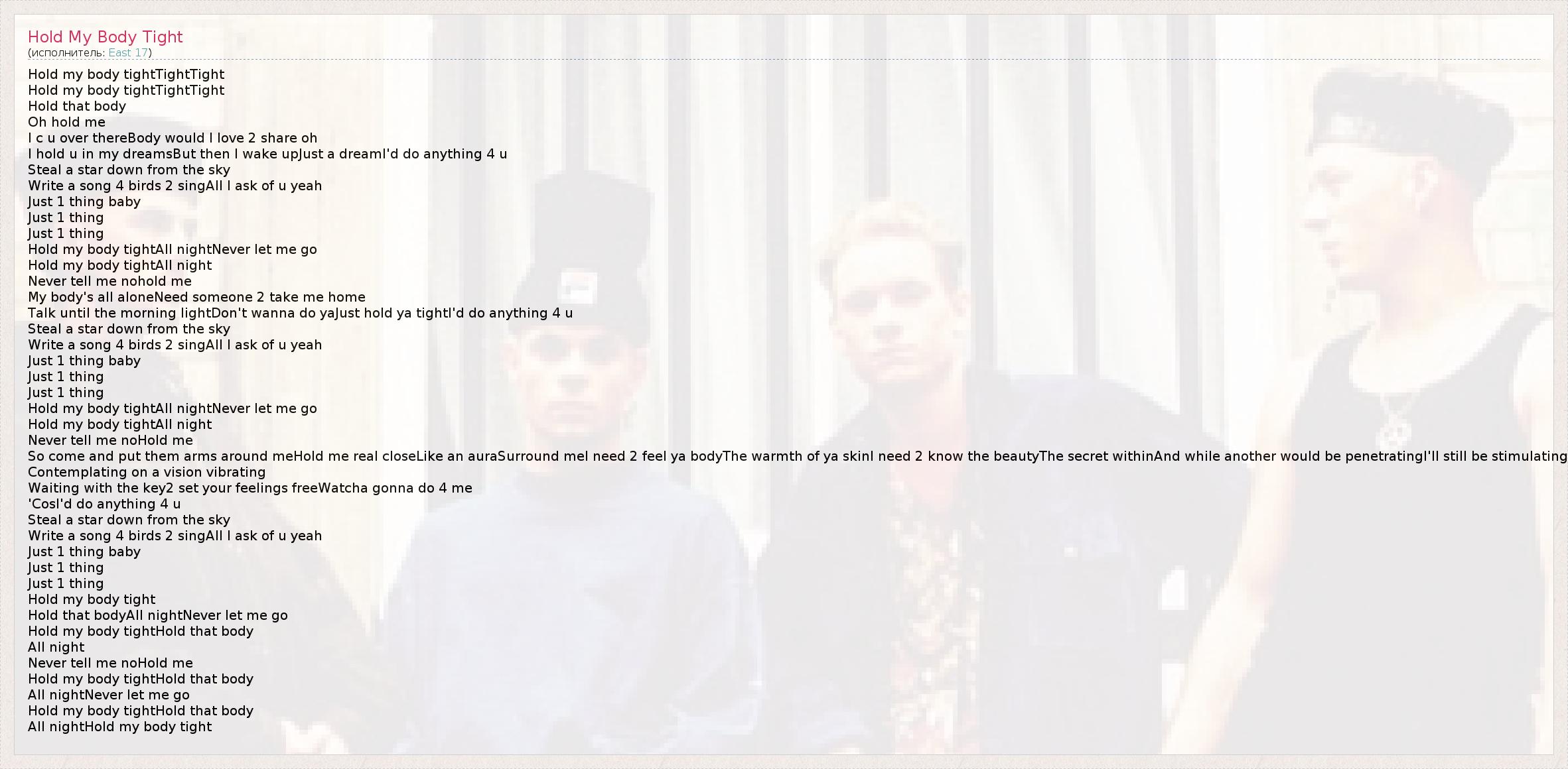 А как ты думаешь, о чем песня "Hold My Body Tight" ?