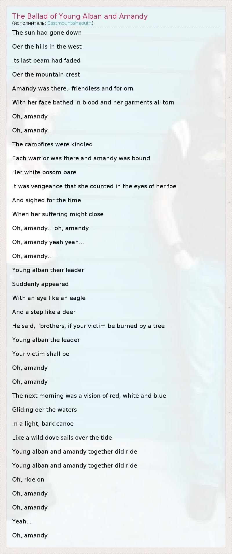 ГлавнаяИсполнителиEastmountainsouthThe Ballad of Young Alban and Amandy