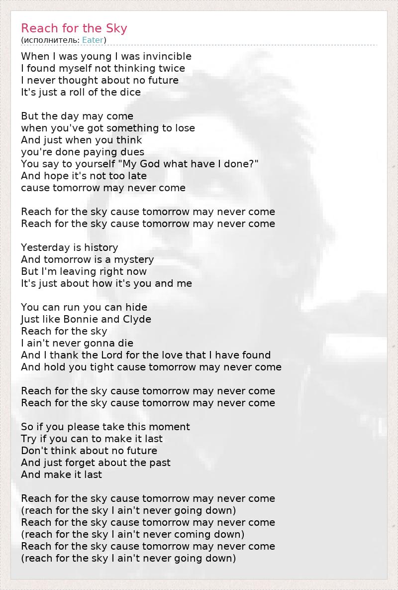 А как ты думаешь, о чем песня "Reach for the Sky" ?