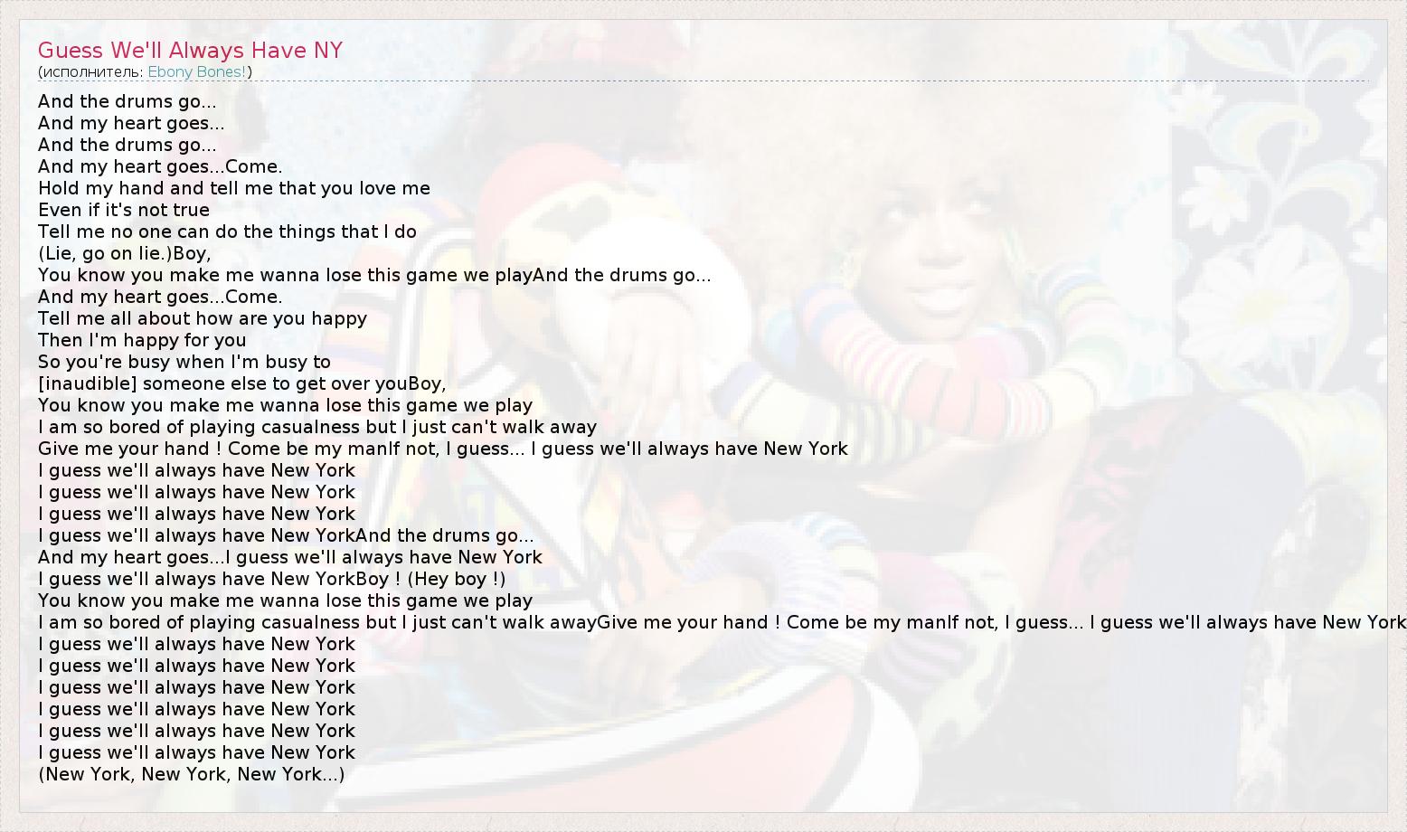 ГлавнаяИсполнителиEbony Bones!Guess We'll Always Have NY