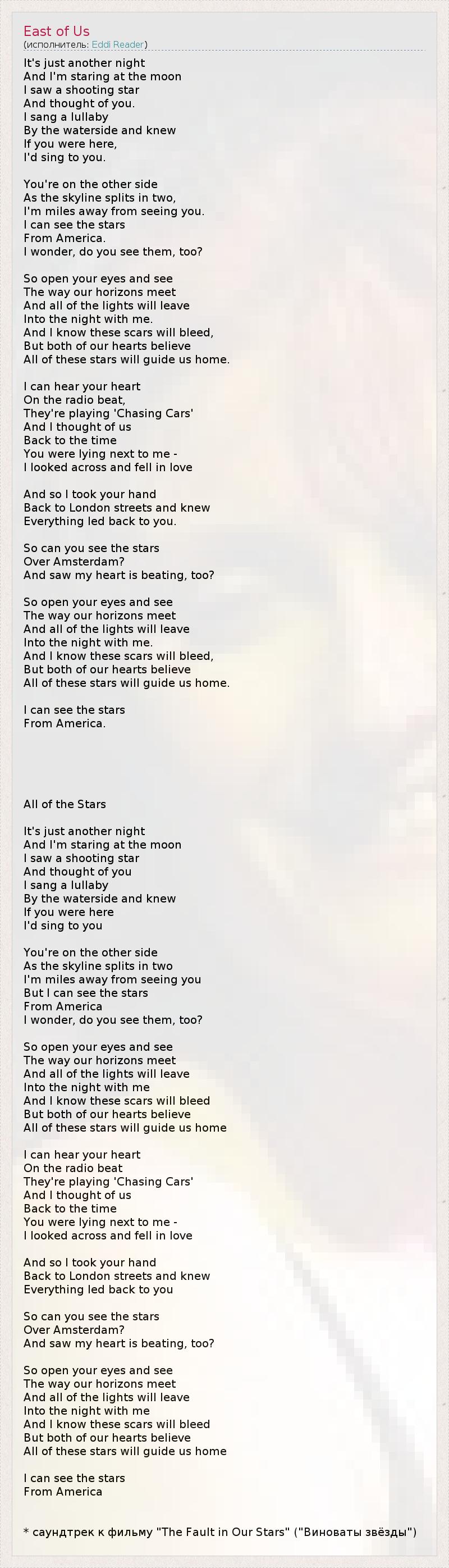 * саундтрек к фильму "The Fault in Our Stars" ("Виноваты звёзды")