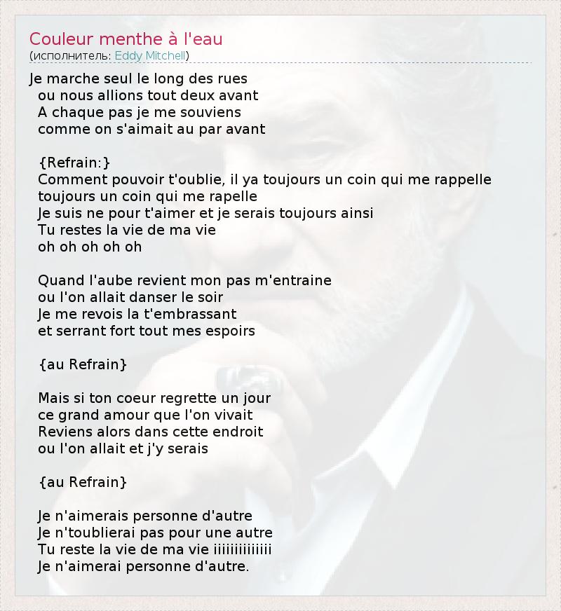 А как ты думаешь, о чем песня "Couleur menthe à l'eau" ?