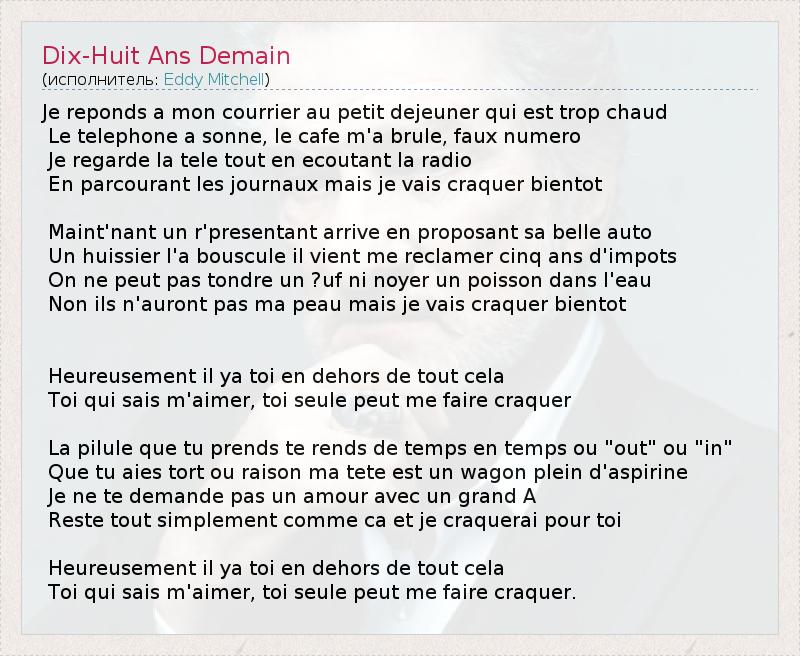 А как ты думаешь, о чем песня "Dix-Huit Ans Demain" ?