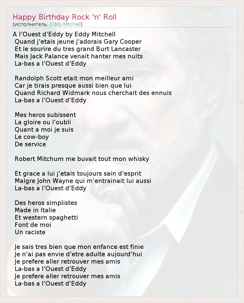 ГлавнаяИсполнителиEddy MitchellHappy Birthday Rock 'n' Roll