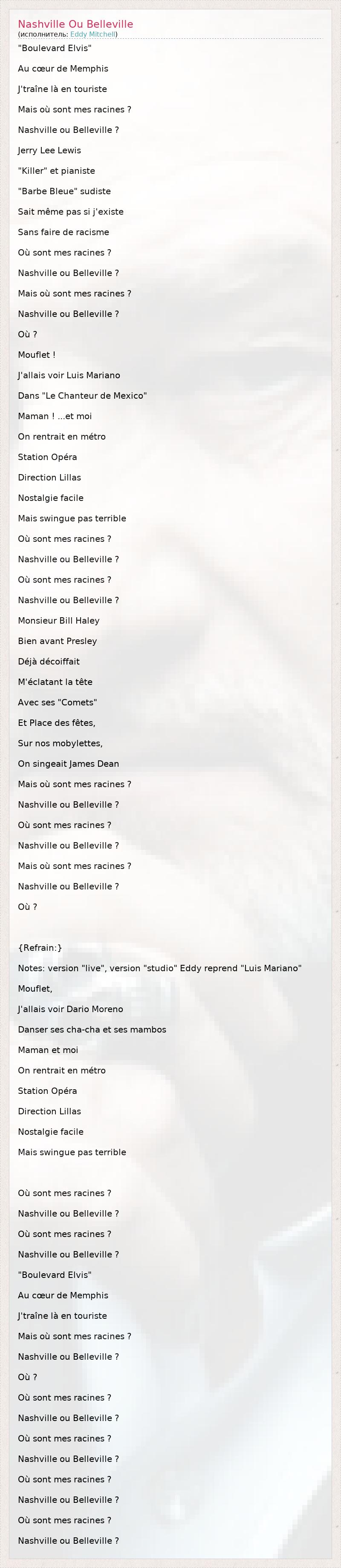 А как ты думаешь, о чем песня "Nashville Ou Belleville" ?