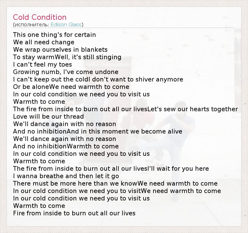 А как ты думаешь, о чем песня "Cold Condition" ?