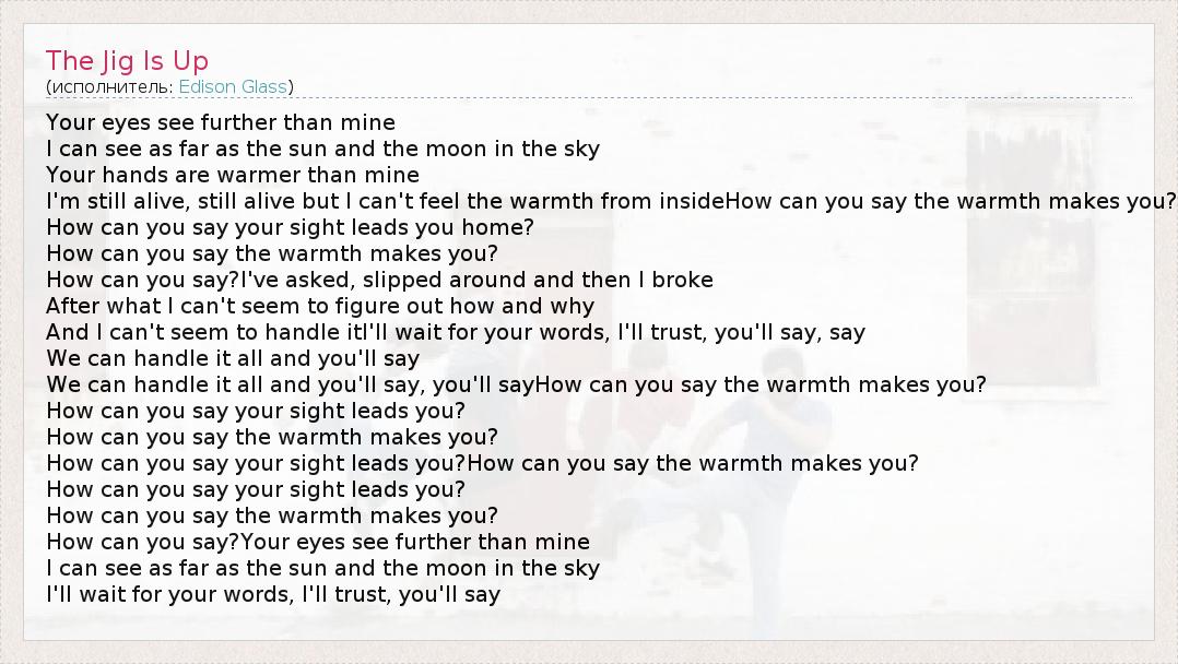 А как ты думаешь, о чем песня "The Jig Is Up" ?