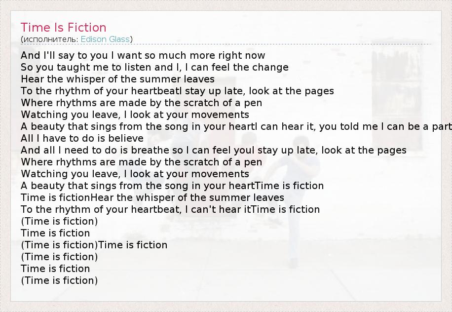 А как ты думаешь, о чем песня "Time Is Fiction" ?