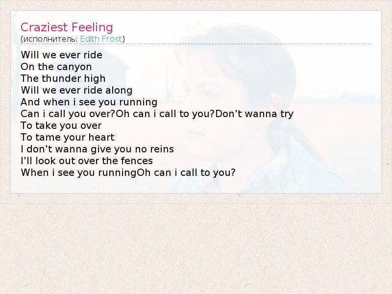 А как ты думаешь, о чем песня "Craziest Feeling" ?