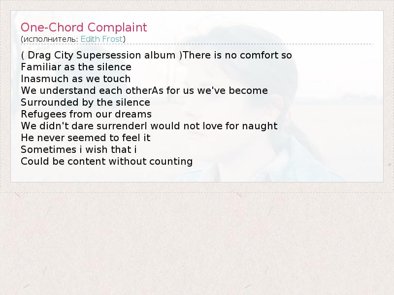 А как ты думаешь, о чем песня "One-Chord Complaint" ?